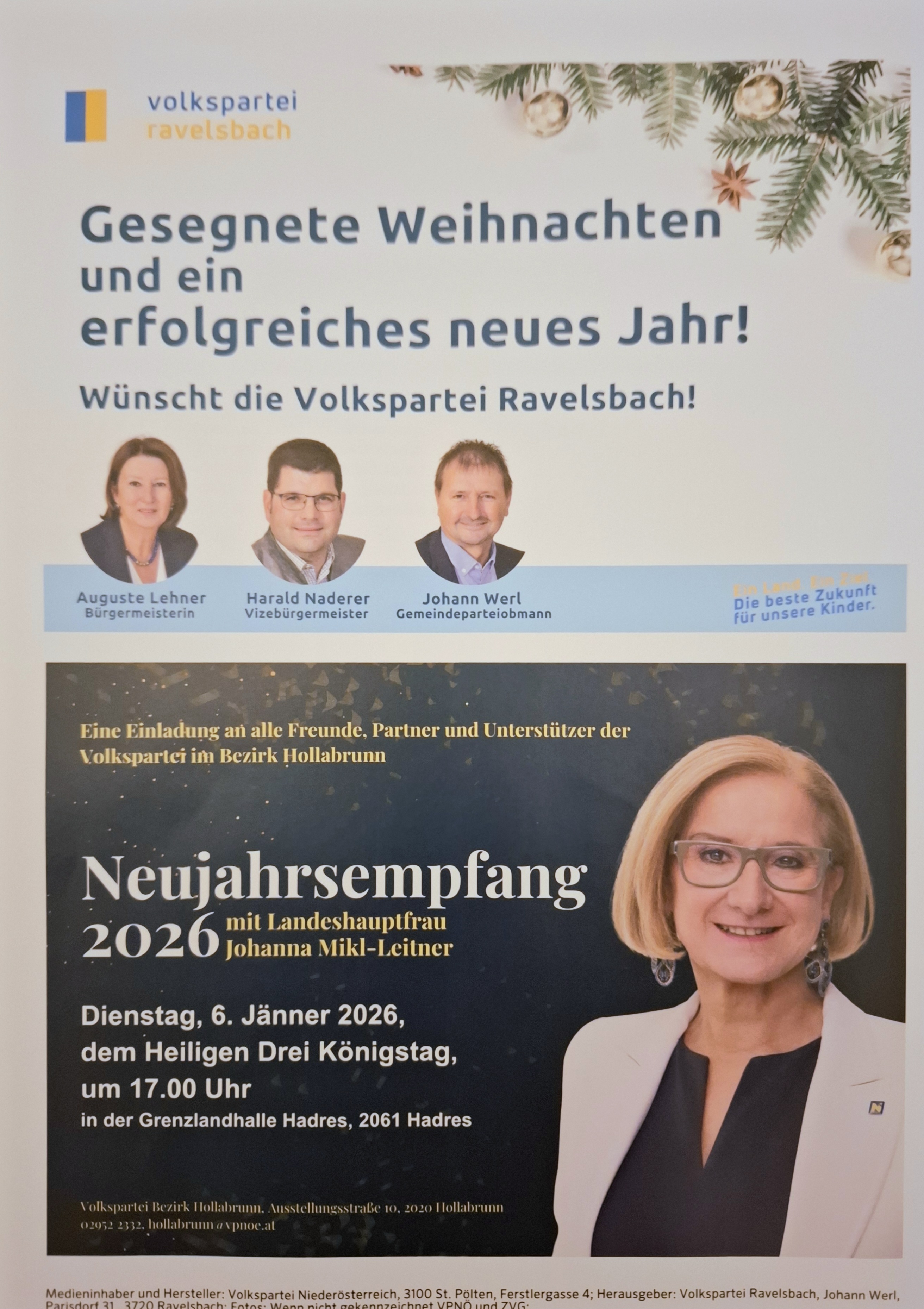 Der Kalender wird in den nächsten Tagen gemeinsam mit der Dezember- Ausgabe unserer Zeitung “Ravelsbach aktuell” an alle Haushalte in Ravelsbach verteilt.